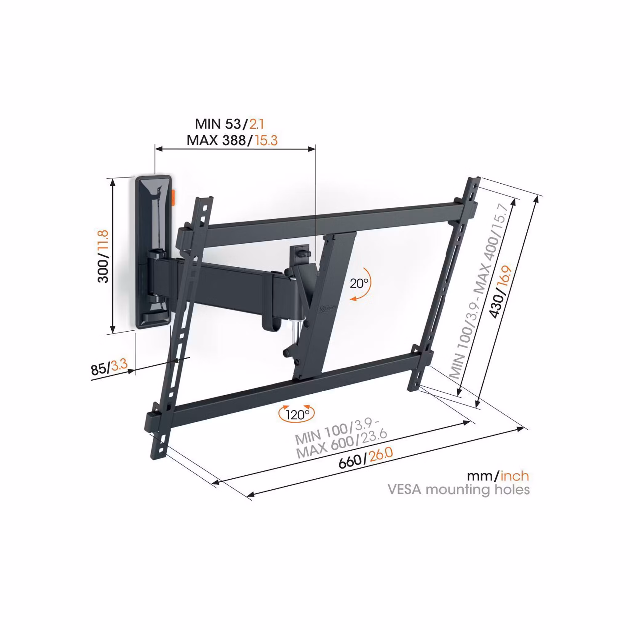 VESA-storlek på upp till 600x400