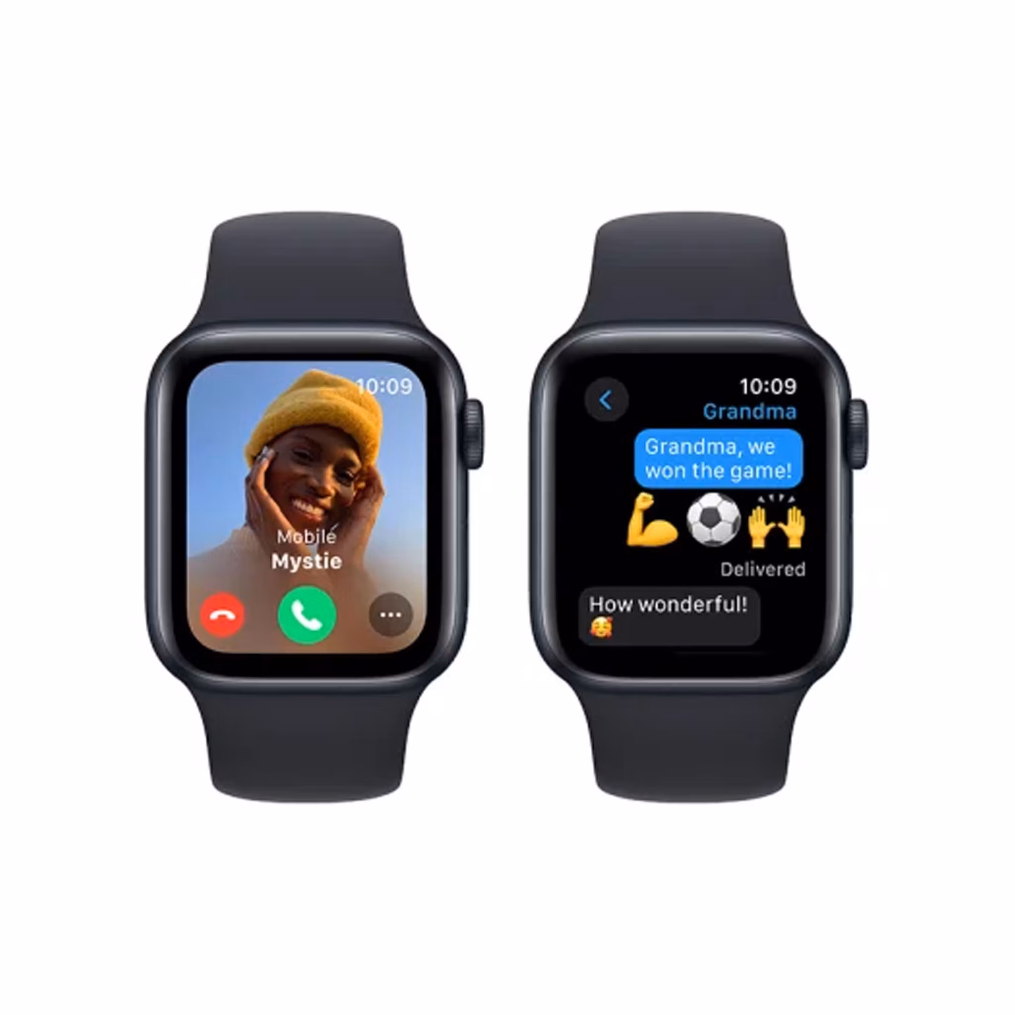 Skicka ett meddelande, ta ett samtal, lyssna på musik och poddar, använd Siri och få hjälp med Nödanrop SOS.2 Apple Watch Series SE (GPS) fungerar med iPhone eller wifi för att hålla dig uppkopplad.