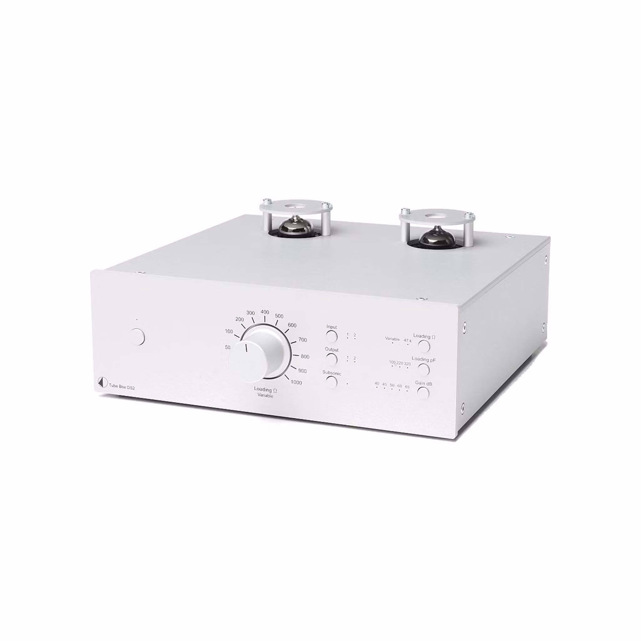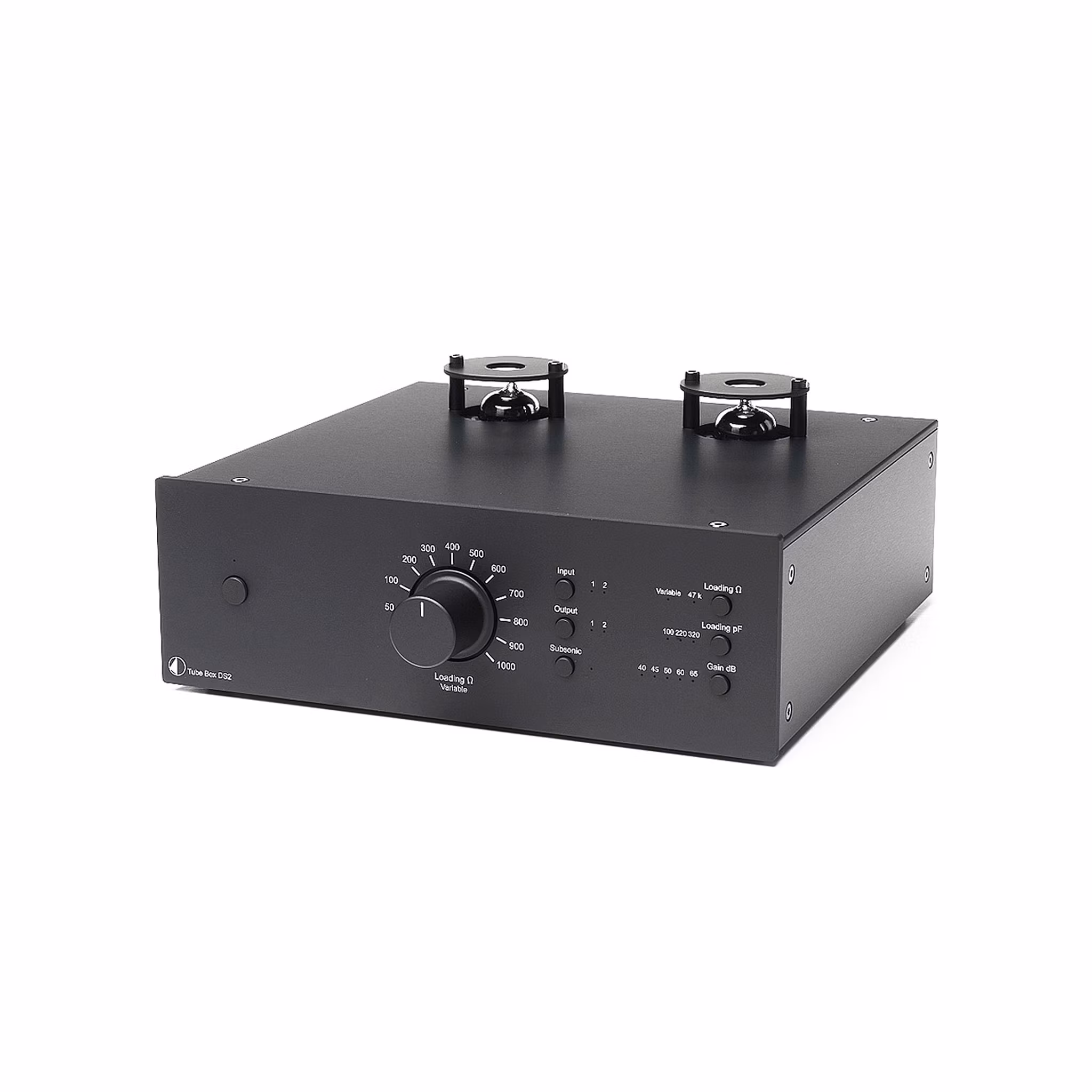 Tube Box DS2 är också mycket välförsedd när det gäller att lasta både MM- och MC-pickuper på rätt sätt. Med fullständigt variabel ingångsimpedans (1-1000 Ohm), ställbar kapacitans mellan 100 och 320 pF, ett valbart subsoniskt filter samt inte mindre än hela fem olika gain-alternativ mellan 40 och 65 dB, är detta förträffliga RIAA-steg redo för det mesta.