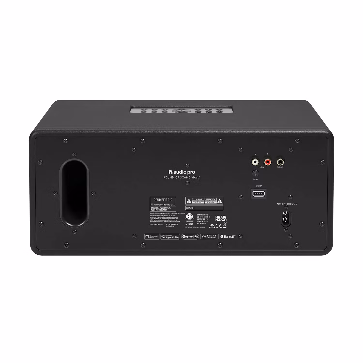 D-2 är designad för att passa sömlöst in i alla hem och är klädd i konstläder med solida aluminiumdetaljer och ett robust träkabinett. Multiroom-funktionen gör att du kan spela samma musik i hela huset eller olika låtar i olika rum, vilket ger flexibilitet och bekvämlighet. Högtalaren kan anslutas till en subwoofer, antingen via kabel eller trådlöst om det är en multiroom-subwoofer, vilket möjliggör ännu högre uppspelning.