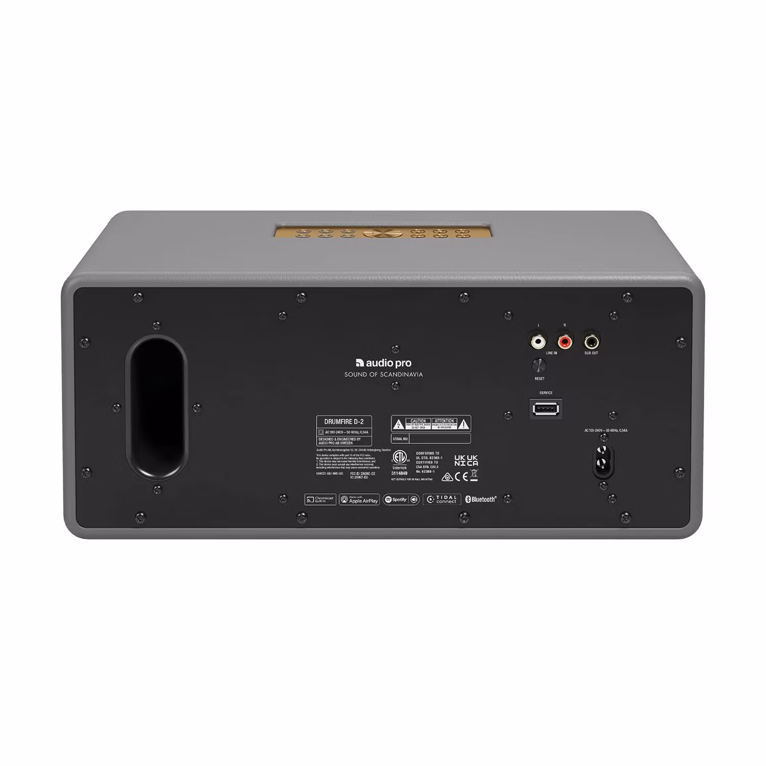 D-2 är designad för att passa sömlöst in i alla hem och är klädd i konstläder med solida aluminiumdetaljer och ett robust träkabinett. Multiroom-funktionen gör att du kan spela samma musik i hela huset eller olika låtar i olika rum, vilket ger flexibilitet och bekvämlighet. Högtalaren kan anslutas till en subwoofer, antingen via kabel eller trådlöst om det är en multiroom-subwoofer, vilket möjliggör ännu högre uppspelning.