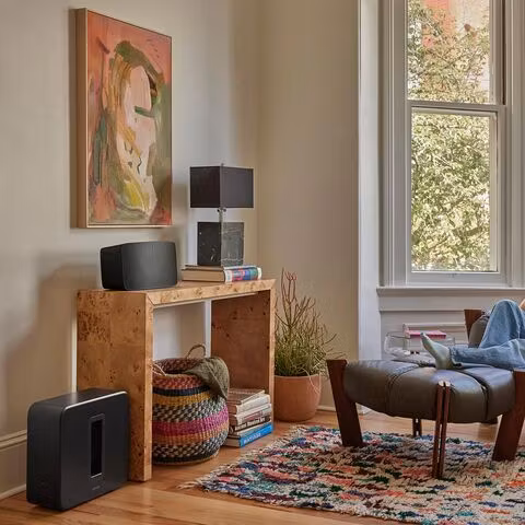 Förbättra ditt ljudsystem genom att para ihop Sub 4 med andra enheter. De kompatibla enheterna är Sonos Arc, Beam, Five, Era 300 och Era 100.